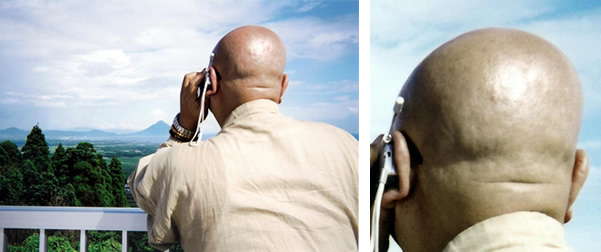 これは、弘法大師が求聞持法の修行をされた、室戸の海岸の岩場で、弟子の真照が百日間の座禅修行中に、本人より電話があり話をしている時に、住職の後頭部に弘法大師の顔が、現れたのです。