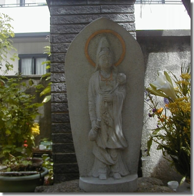 庭の壁に、慈母観音様が現れましたので、国見山大国寺の住職である川上英明師にお願いして、土地と家払いを致しました所、この慈母観音様は、この土地と家を守る為に現れた事が判明致しました。